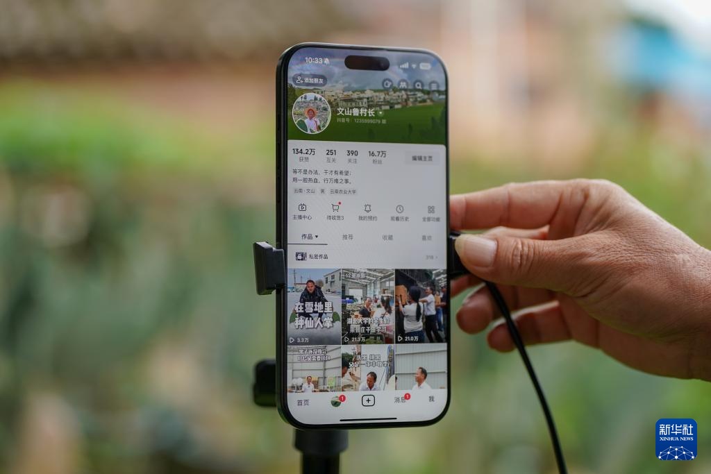 8月7日,庄子田居民小组党支部书记鲁春红展示自己用于推介仙人掌的社交账号。新华社记者 彭奕凯 摄