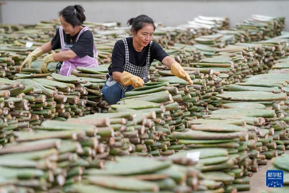 8月6日,庄子田村民在村里的仙人掌加工厂工作。新华社记者 彭奕凯 摄