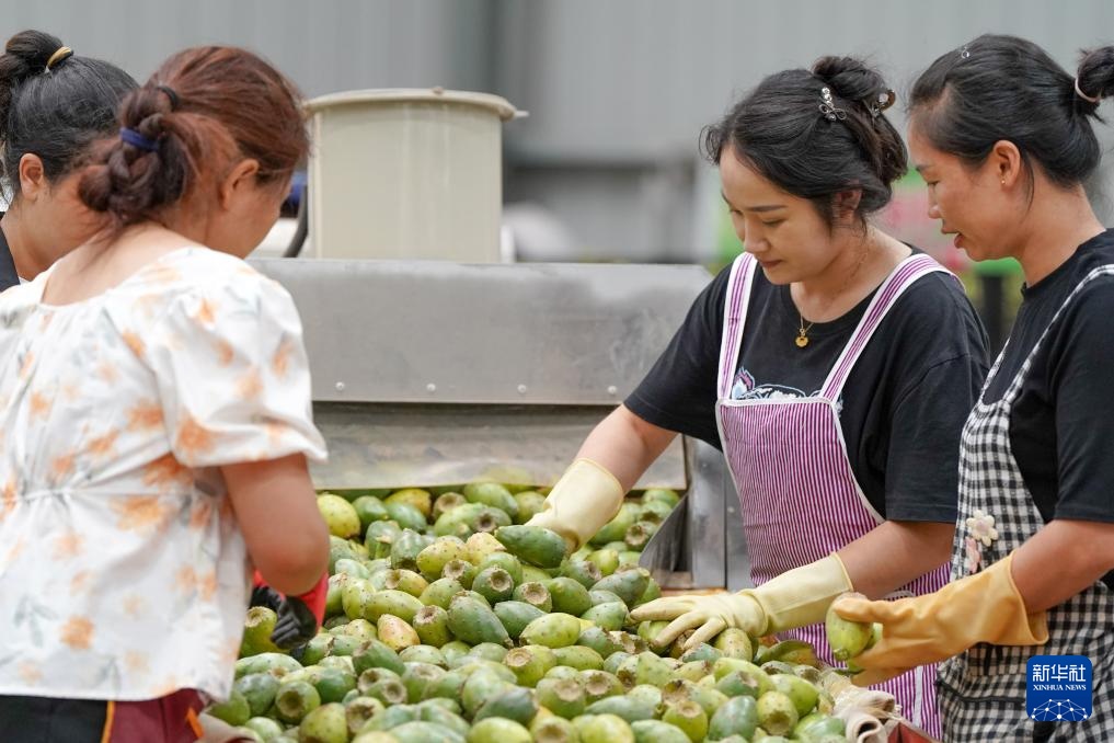 8月6日,庄子田村民在村里的仙人掌加工厂分拣仙人掌鲜果。新华社记者 彭奕凯 摄