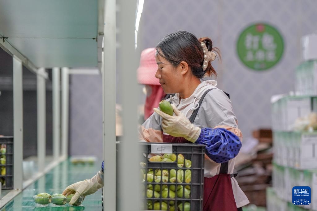 8月6日,庄子田村民在村里的仙人掌加工厂打包仙人掌鲜果。新华社记者 彭奕凯 摄