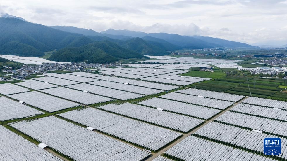这是8月8日拍摄的兰坪县高原特色现代农业产业园蓝莓基地一景(无人机照片)。新华社记者 胡超 摄