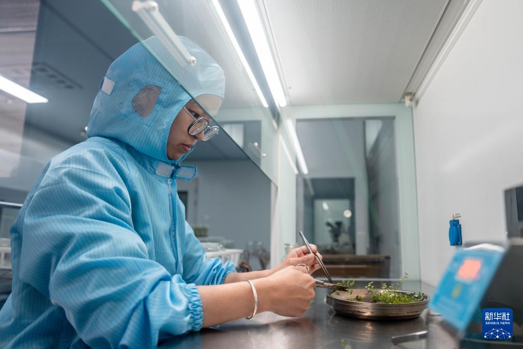 8月8日,工作人员在兰坪县高原特色现代农业产业园培育蓝莓苗。新华社记者 胡超 摄