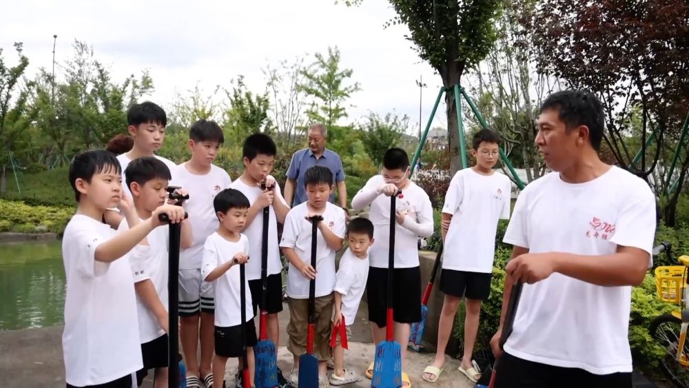 今年暑期,浙江省杭州市余杭区一支主要由7至14岁少年组成的少年龙舟队正在紧张集训。