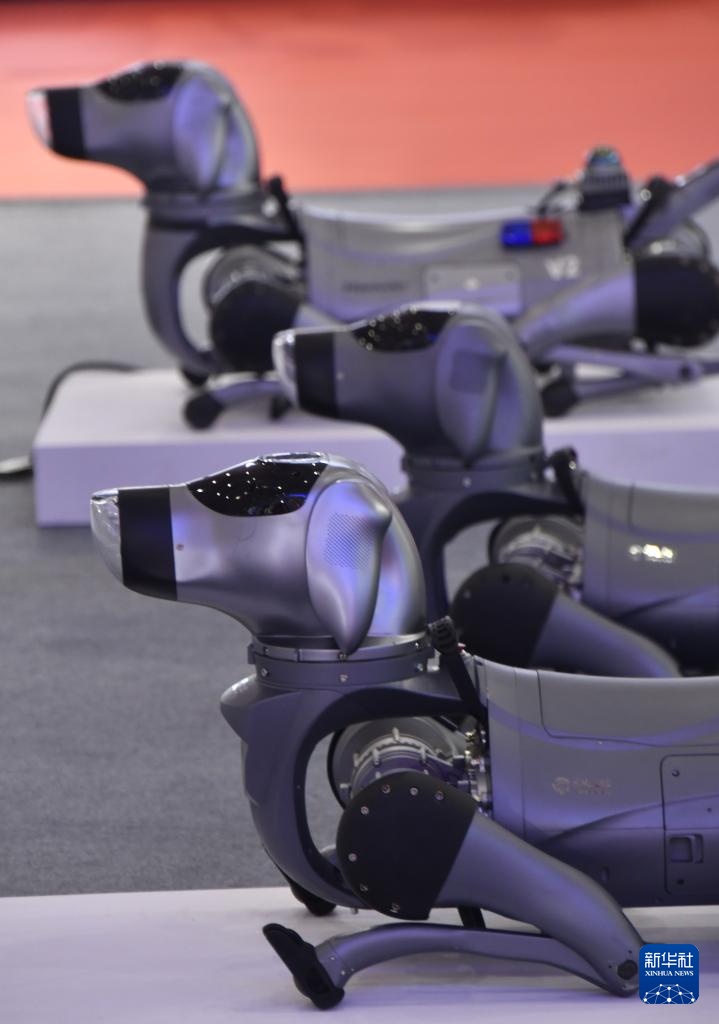 2025世界机器人大会上展示的智能机器狗(8月8日摄)。新华社记者 李欣 摄