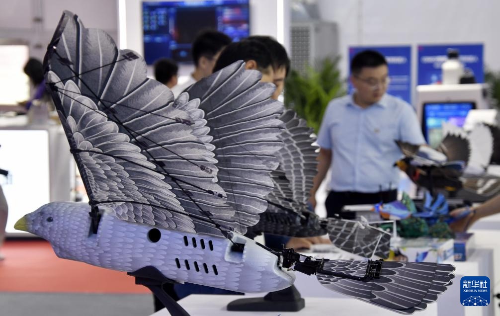 2025世界机器人大会上展示的仿生机器鸟(8月8日摄)。新华社记者 李欣 摄