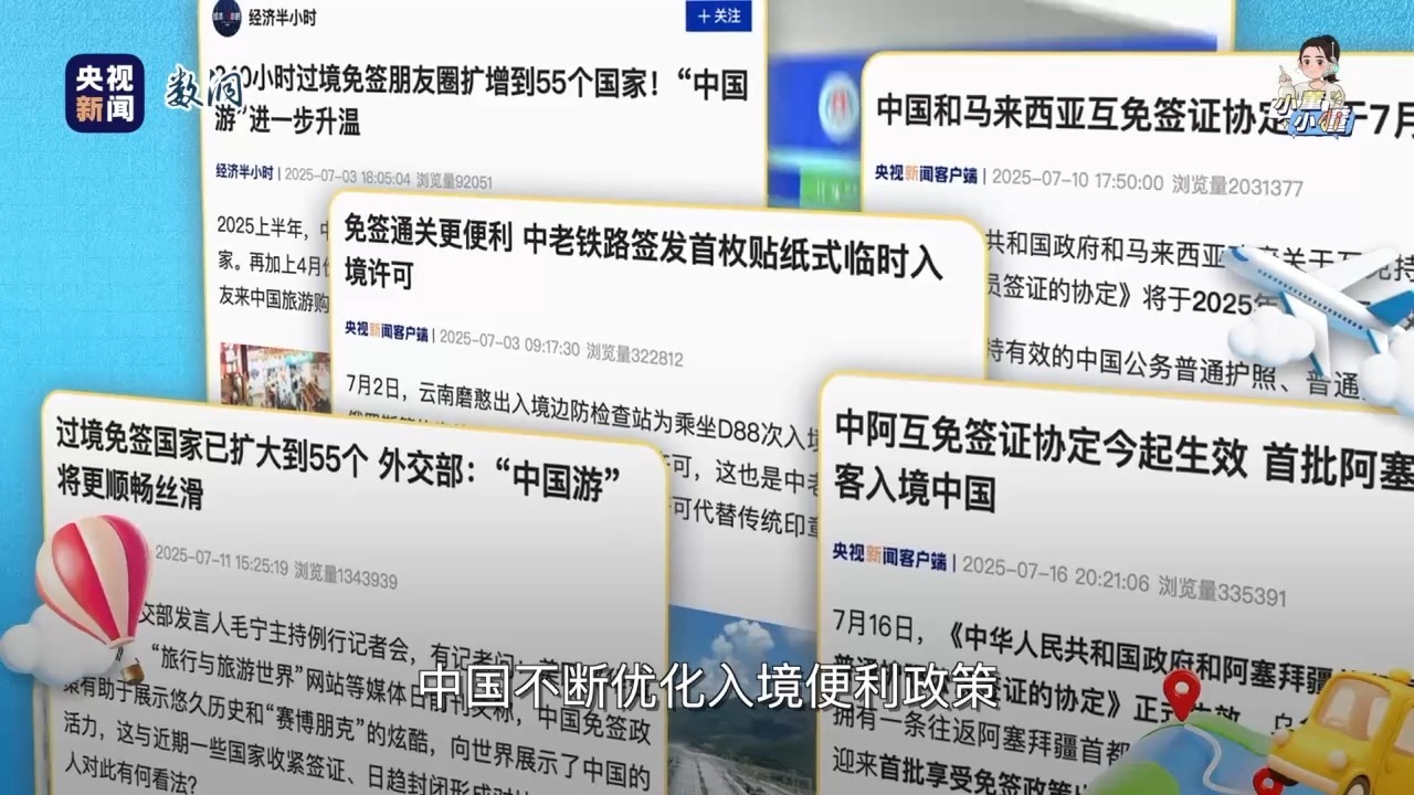 大家好,我是央视小董,一名会写代码的数据新闻编辑。最近我发现,2万粉丝的外国博主,一条中国旅游视频就能狂揽一千五百万播放量,直冲爆款;美国的大网红来中国一趟,粉丝暴涨100万。不只是视频里火爆,现实生活中,这个暑期,街头巷尾的外国游客也越来越多。外国人拍中国,是怎么让全球网友都看上头的?