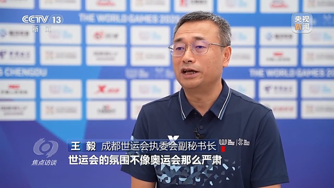 成都世运会执委会副秘书长 王毅:世运会聚焦的点主要是非奥比赛项目,世运会的氛围不像奥运会那么严肃,既有竞技体育的对抗性,也强调趣味性和参与感,这是一个融合了传统与现代的体育嘉年华。