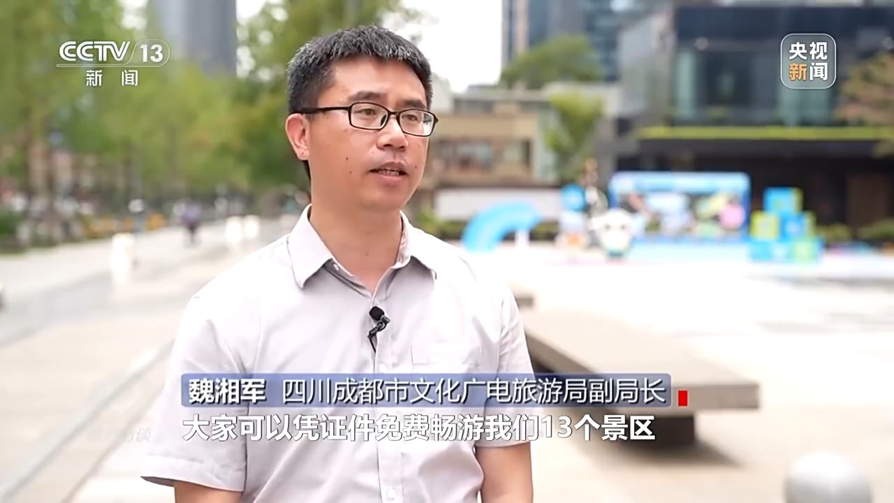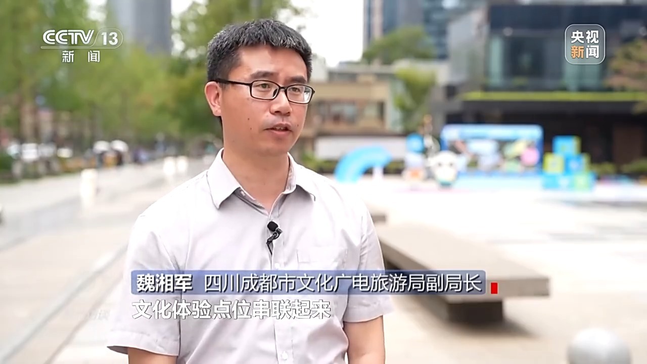 四川成都市文化广电旅游局副局长 魏湘军:我们精心设置了7条主题线路,把成都17个最具代表性的文化体验点位串联起来。这几天,我们也看到很多国内外游客朋友和运动员在熊猫基地、武侯祠、宽窄巷子、青城山、都江堰等体验成都的文化,沉浸式感受这座公园城市、幸福成都。