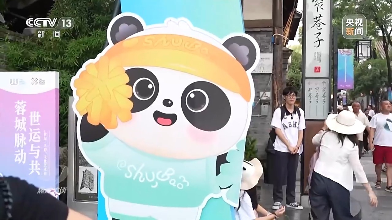 成都宽窄巷子依托世运吉祥物“蜀宝”“锦仔”变身世运主题街,世运吉祥物,搭配主题打卡墙、沿街形象架等氛围装置,生动展现“世运双宝”可爱形象。在宽窄巷子,还专门设置了“世运•天府”文化艺术展。