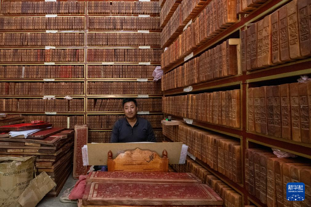 8月6日,雕刻师在工作中。西藏雪巴康雕版印刷制作技艺入选西藏自治区级非物质文化遗产代表性项目名录。新华社记者 姜帆 摄