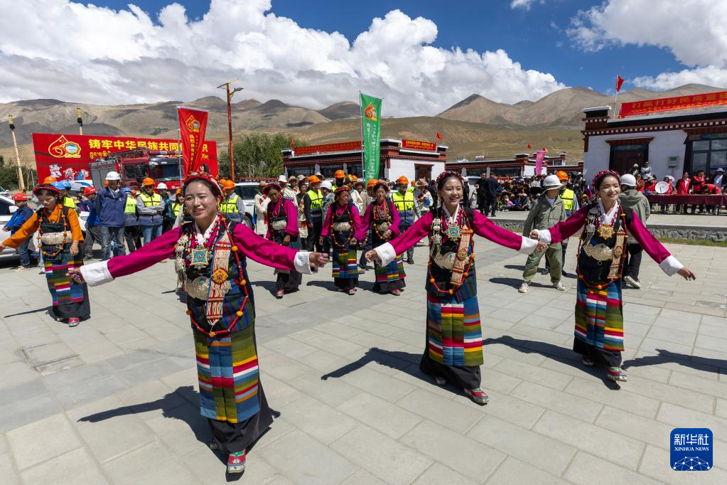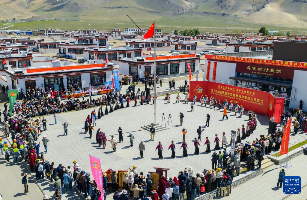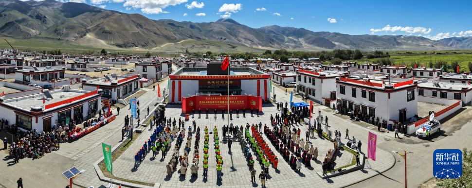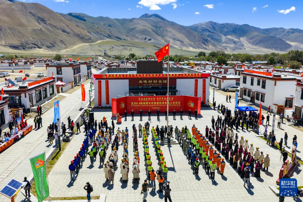 8月15日在西藏定日县森嘎村拍摄的“定日6.8级地震灾后恢复重建民房首批入住仪式”(无人机照片)。新华社记者 姜帆 摄