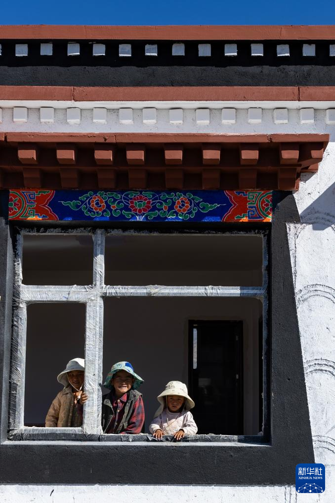 8月14日,西藏拉孜县锡钦乡的小朋友站在在建新房窗边向外远眺。8月20日前他们都将搬进新房。新华社记者 姜帆 摄