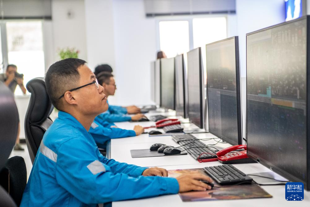8月15日,在重庆市忠县的重庆海螺水泥有限责任公司,工作人员通过大数据对工厂运行进行监测。新华社记者 唐奕 摄
