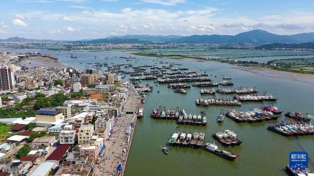 8月16日拍摄的广东省茂名市博贺渔港(无人机照片)。新华社记者 肖恩楠 摄