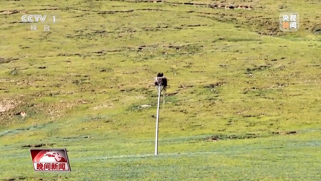 现在的三江源草原上,每隔一段距离就会有这样一根孤零零的水泥杆。它有一个非常形象的名字,叫招鹰灭鼠架,老鹰在观察台上观察目标,瞄准冲击。这也是三江源国家公园保护草场,防治鼠害的一项有力措施。