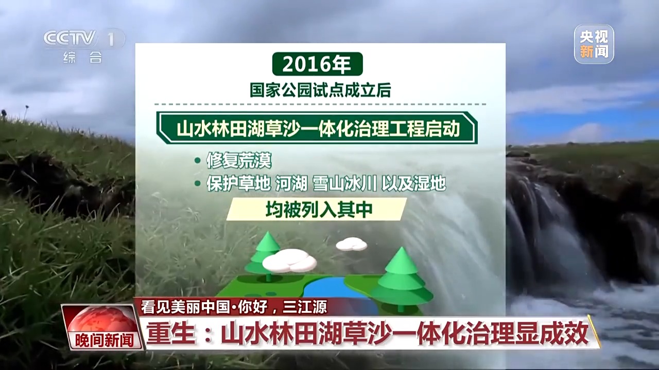生态治理、退牧还草、易地搬迁、山水林田湖草沙一体化治理,二十年的坚持不懈,让三江源旧貌换了新颜。三江源黑土滩治理区域植被盖度,由治理前的不足20%提升至80%以上。