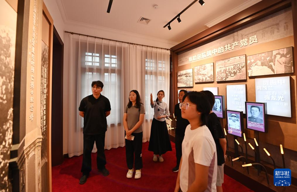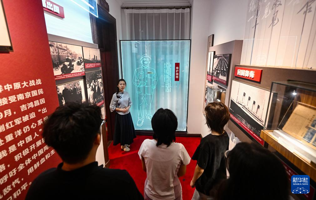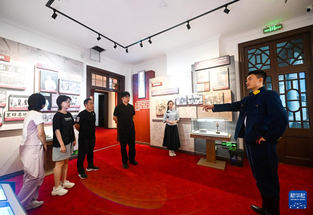 讲解员带领观众在吉鸿昌旧居参观(8月16日摄)。新华社记者 赵子硕 摄