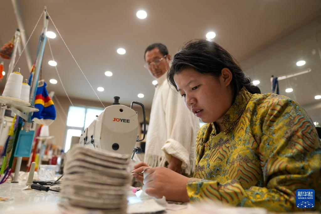 在拉萨雪堆白传统手工艺术学校,60岁的西藏自治区级非物质文化遗产项目藏族服饰(拉萨服饰)代表性传承人洛桑麦朗,与学徒一道研究、制作藏装。从艺四十余载,他培养了百余名弟子,还参与编撰教材、建立藏族服饰数据库等工作。在他的巧手下,新式藏装将传统与现代交融,让非遗技艺与现代审美碰撞,成为街头一道靓丽的风景。