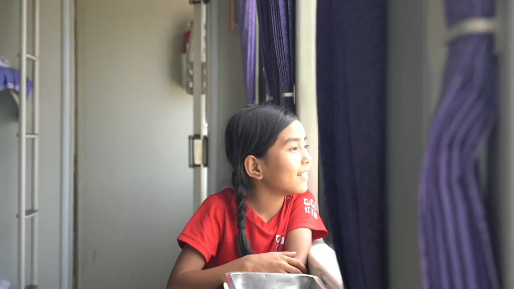 她第一次坐火车,穿过中国最大的沙漠——塔克拉玛干沙漠;第一次坐飞机,跨越将近3000公里航程;第一次来到天安门广场,和许多人一起观看升旗仪式。