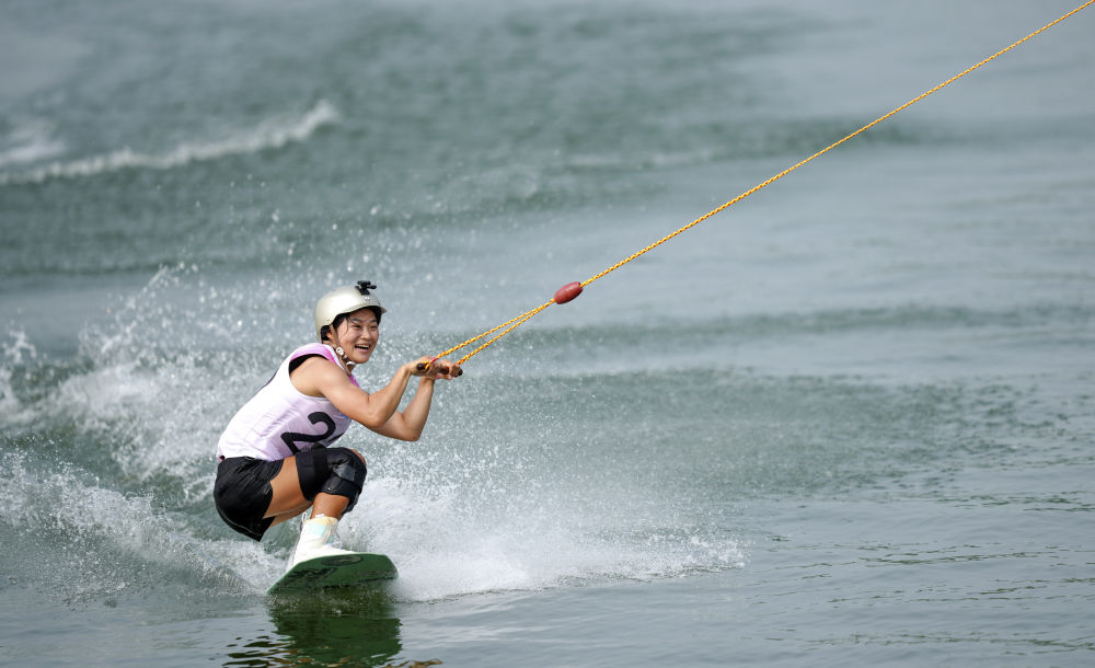 8月8日,2025年成都世运会索道滑水资格赛在三岔湖桃花岛赛场举行,图为中国选手徐露在女子资格赛中。新华社记者 贝赫 摄