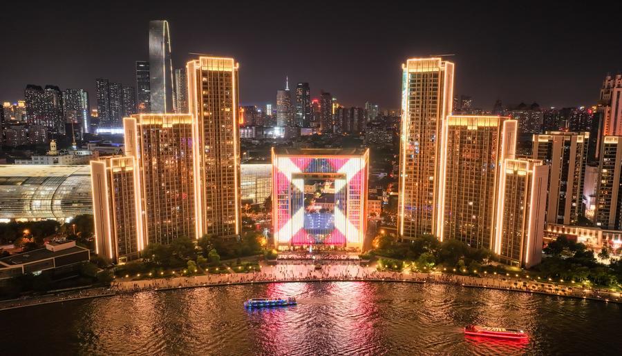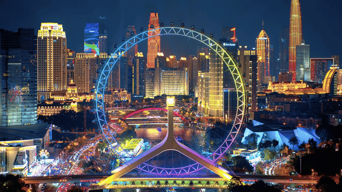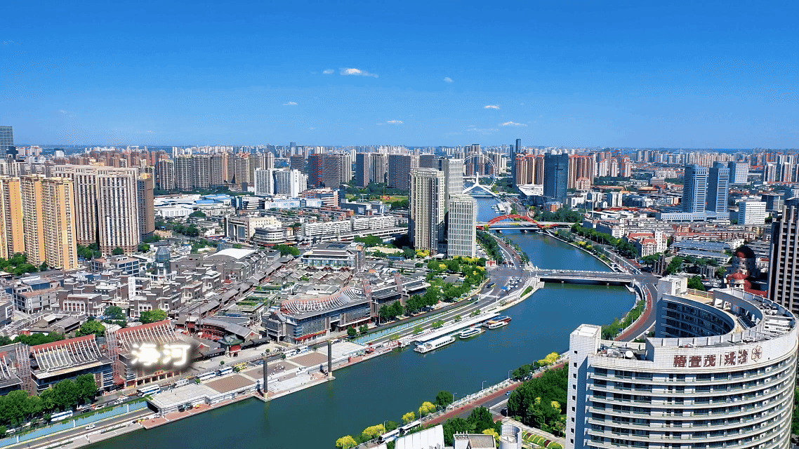 这是2025年8月1日拍摄的天津海河夜景(无人机照片)。新华社记者 孙凡越 摄