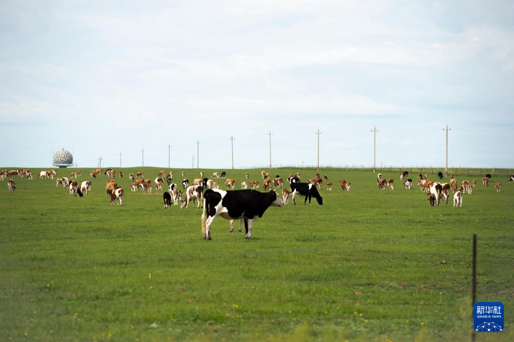8月1日,牛群在蒙源农牧业集团有限公司承包的草场上吃草。新华社记者 丁赫 摄