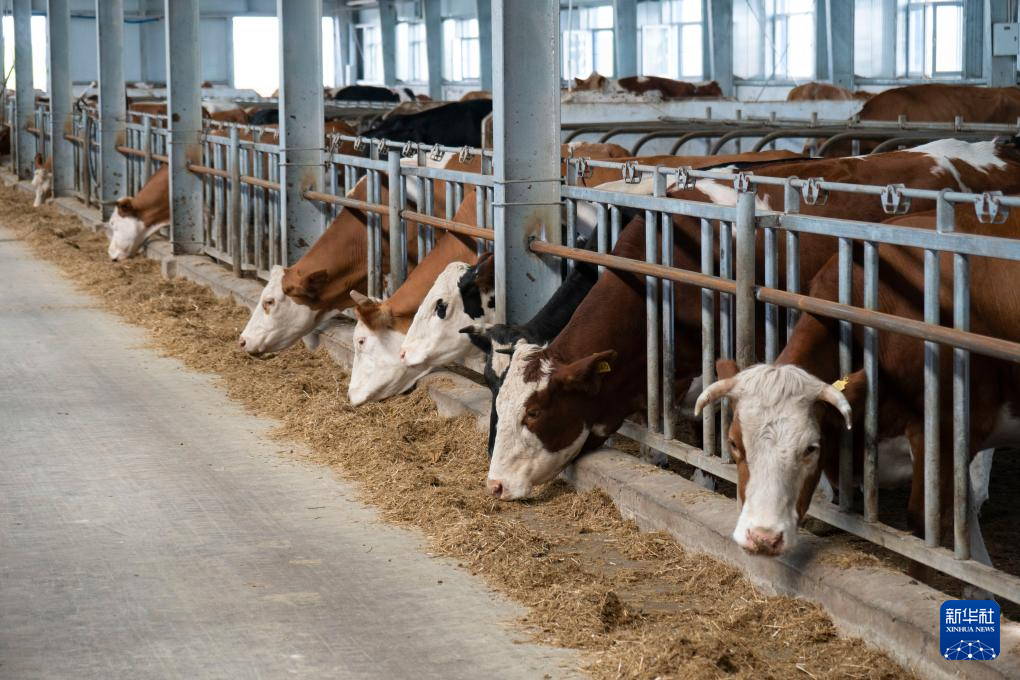 8月1日,牛群在蒙源农牧业集团有限公司的棚舍中育肥。新华社记者 丁赫 摄