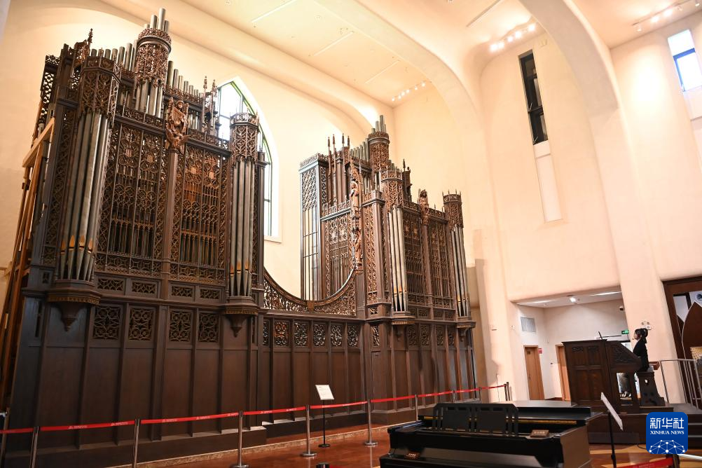 8月23日,鼓浪屿文旅中心的工作人员在管风琴艺术中心演奏目前亚洲最大的管风琴。新华社记者 肖潇 摄