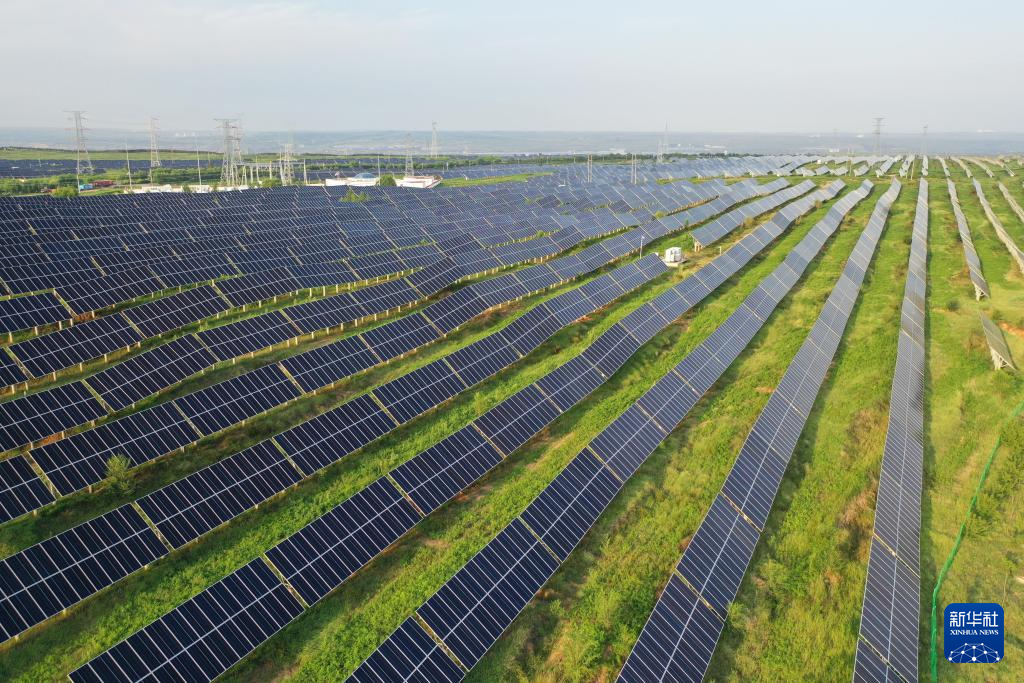 这是7月30日拍摄的天骄绿能50万千瓦采煤沉陷区生态治理光伏发电示范项目区(无人机照片)。新华社记者 李志鹏 摄