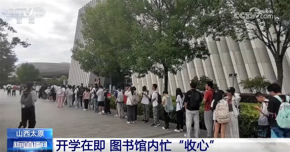 一大早,太原市图书馆还没开馆,门口就排起长长的队伍,其中以即将开学的学生为主。