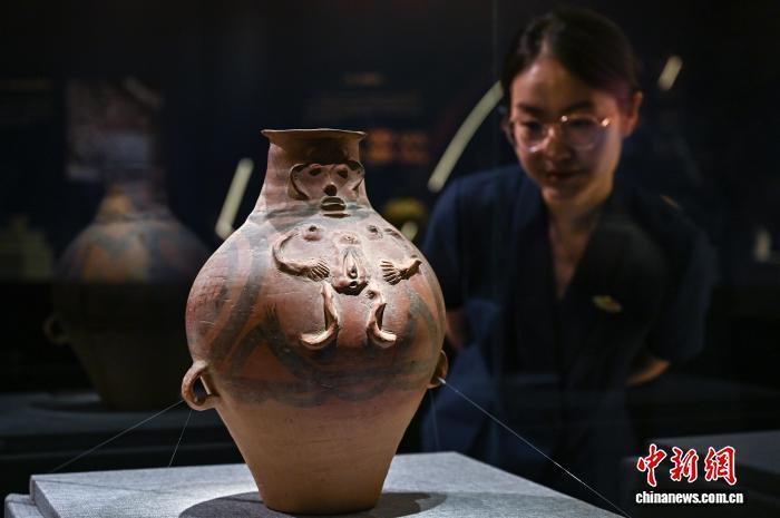9月2日,展览上展出的“裸体人像彩陶壶”。中新社记者 韦亮 摄