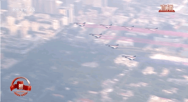 教练机梯队拉出14道彩烟,寓意着中华民族14年可歌可泣的抗战历程,象征着14亿多中国人民奔向强国复兴的光明前景。