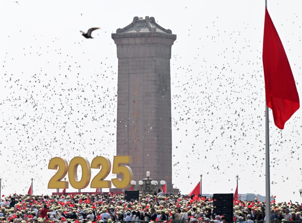 9月3日,现场放飞和平鸽。新华社记者 肖艺九 摄