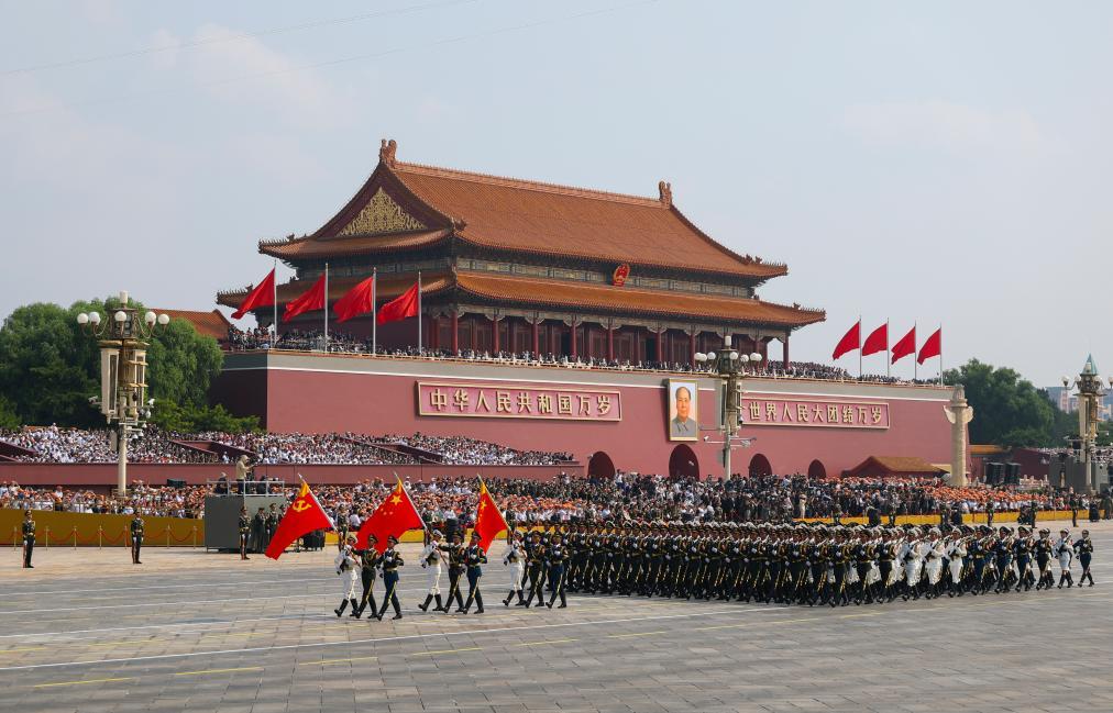 9月3日,纪念中国人民抗日战争暨世界反法西斯战争胜利80周年大会在北京隆重举行。这是国旗护卫队在行进中。新华社记者 魏培全 摄