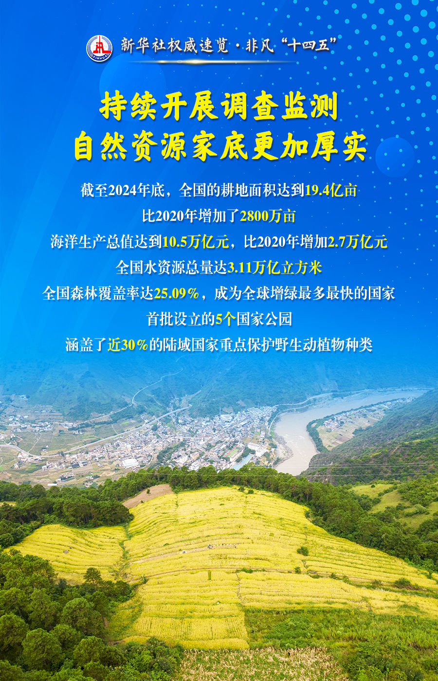 国务院新闻办公室10日举行“高质量完成‘十四五’规划”新闻发布会。自然资源部部长关志鸥说,“十四五”以来全力当好自然资源“大管家”和美丽中国“守护者”,全面完成“十四五”规划的目标任务,有效支撑了经济社会的高质量发展。通过这组海报,一起了解。