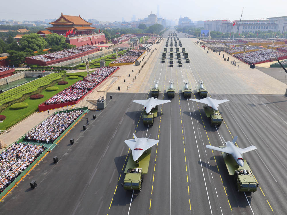 2025年9月3日,纪念中国人民抗日战争暨世界反法西斯战争胜利80周年大会在北京隆重举行。这是装备方队接受检阅。新华社记者 刘续 摄