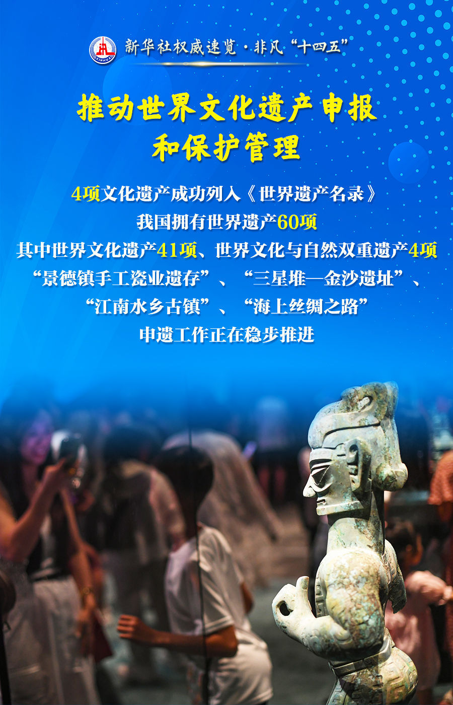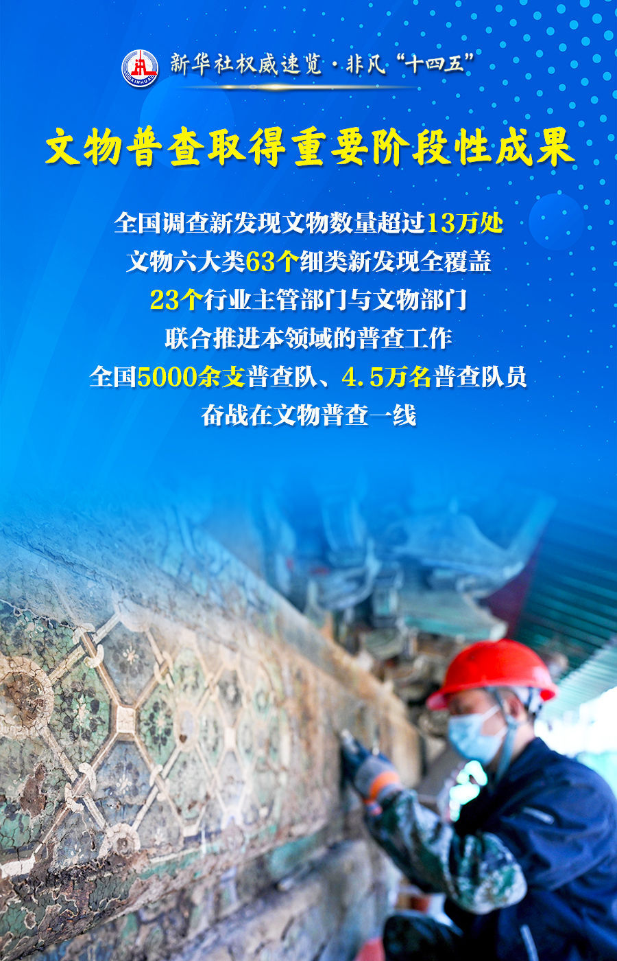 新发现文物数量超过13万处、全国备案博物馆数量达到7046家、中国世界遗产总数达到60项……国新办9月10日举行“高质量完成‘十四五’规划”新闻发布会,国家文物局介绍了文物事业高质量发展有关情况,并就群众关心的文物保护、博物馆热等问题做了详细解答。跟随这组海报,一起了解。