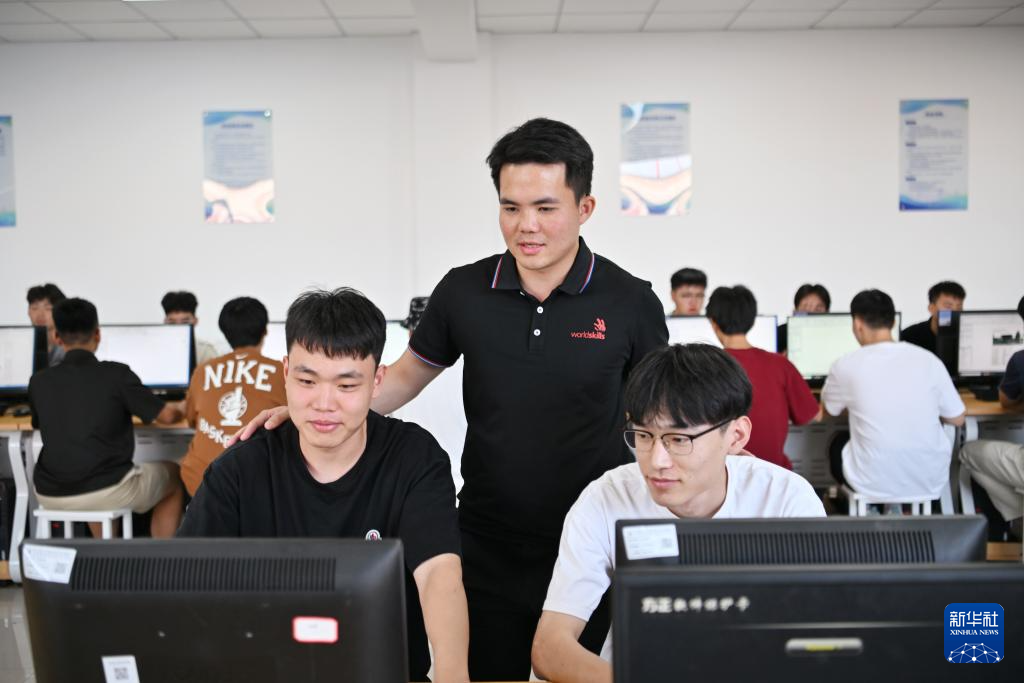 9月9日,伍远州在CAD绘图课堂上指导学生操作。新华社记者 李然 摄