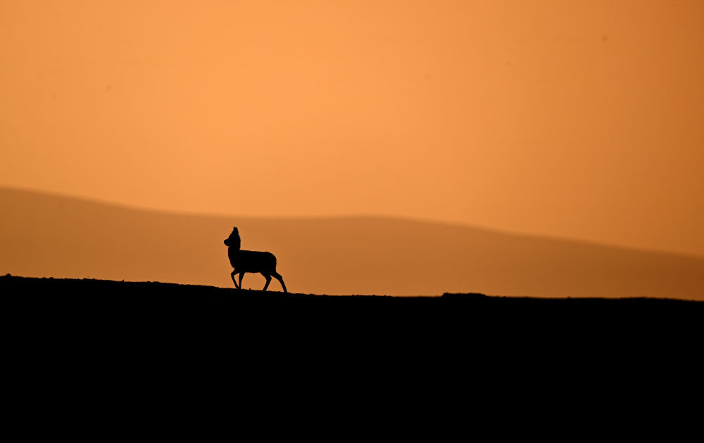 一只雌性藏羚羊在可可西里卓乃湖区域活动(2023年6月18日摄)。 新华社记者 张宏祥 摄