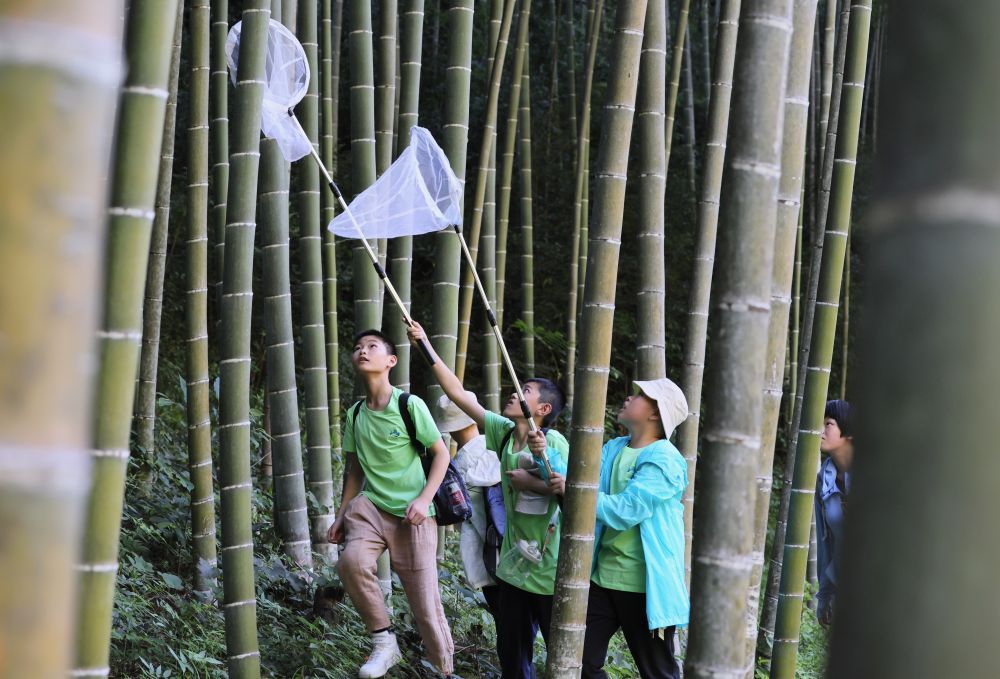 2022年7月,首届武夷山国家公园自然教育活动在武夷山国家公园举行,参加活动的中小学生在武夷山国家公园大竹岚捕捉昆虫。 新华社记者 姜克红 摄