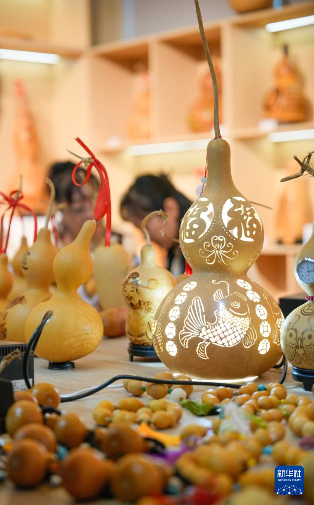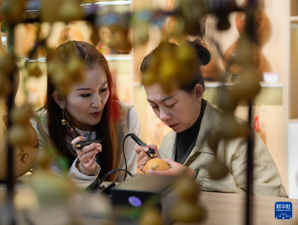 9月13日,在额敏县记忆馆,传统文化爱好者在制作葫芦烙画。新华社记者 张浩波 摄