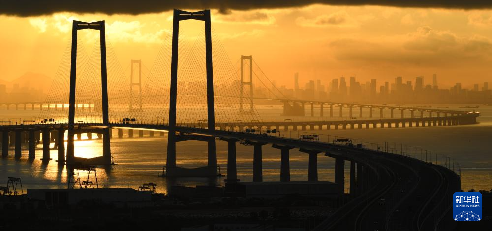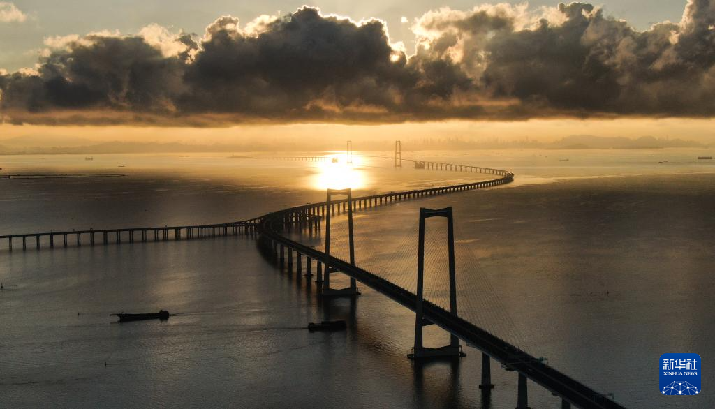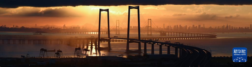 9月14日拍摄的沐浴在晨曦之中的深中通道。新华社记者 邓华 摄