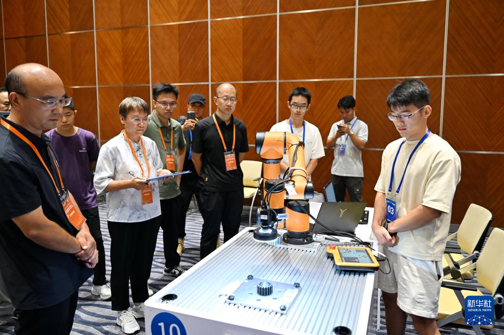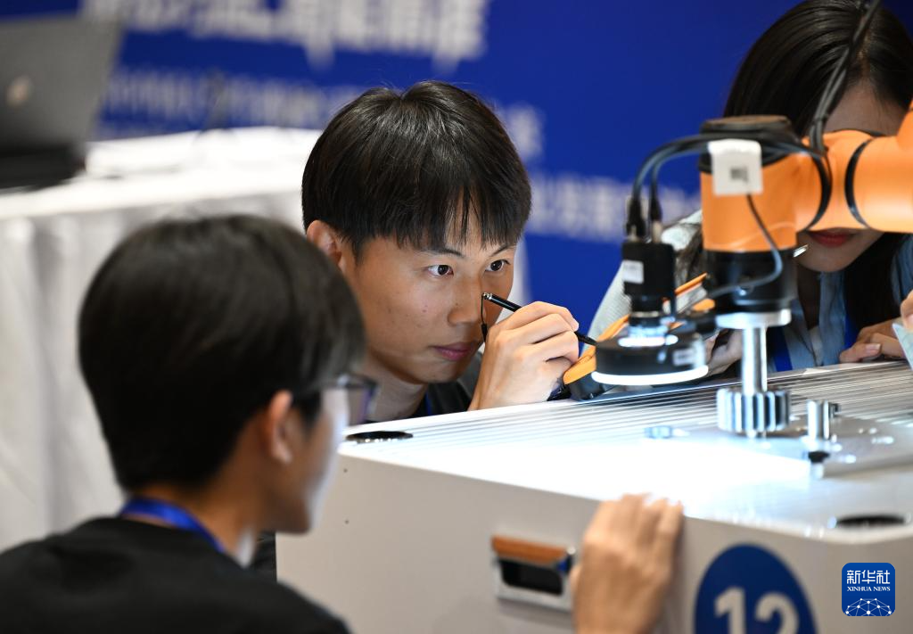 9月14日,参赛选手在比赛中调试设备。新华社记者 牟宇 摄