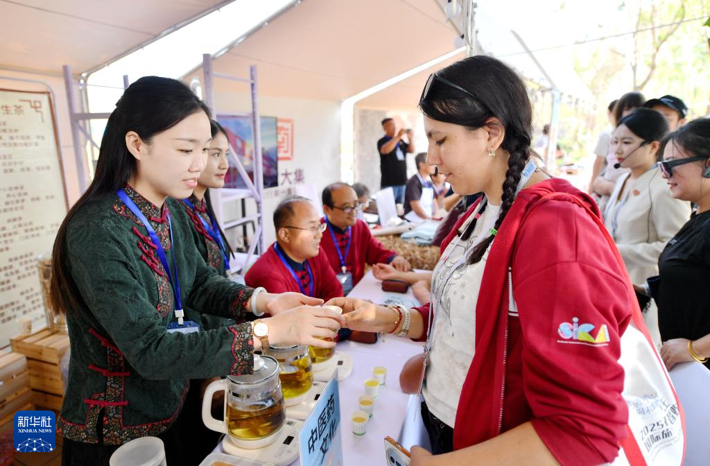 9月14日,外国游客在石家庄市元氏县了解中医药文化。新华社记者 王晓 摄