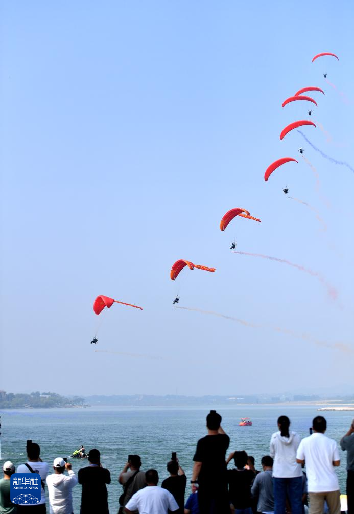 9月14日,游客在石家庄市元氏县蟠龙湖景区游玩。新华社记者 王晓 摄