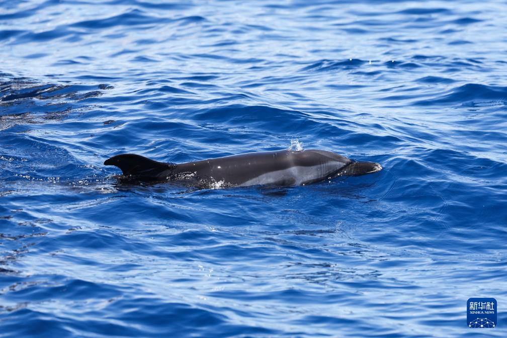 9月14日,在海南万宁一处海域,海豚“万万”在大海中畅游。新华社记者 张丽芸 摄