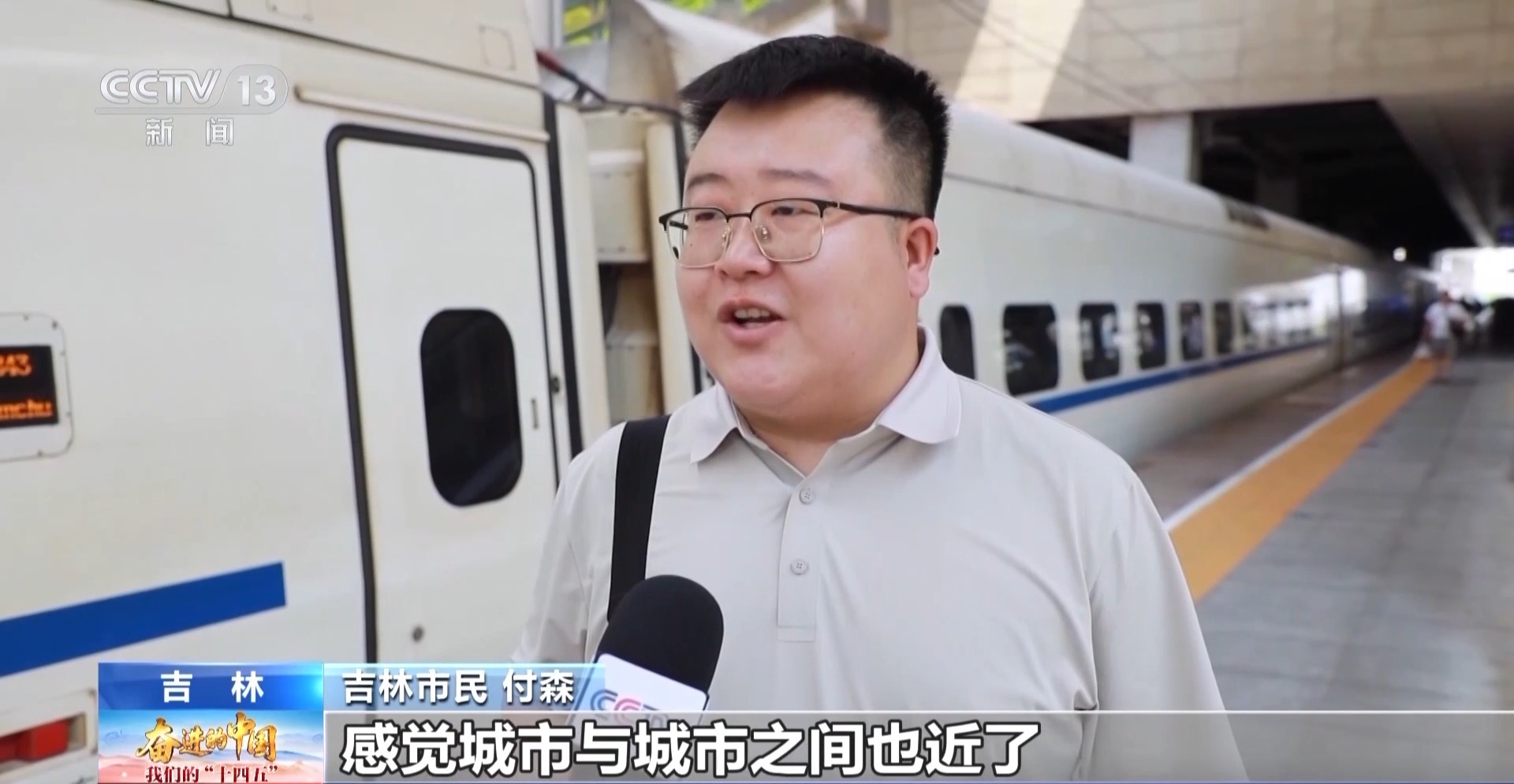 吉林市民 付森:从吉林到长春,坐高铁只需要40分钟,感觉城市与城市之间也近了,人与人之间也近了。