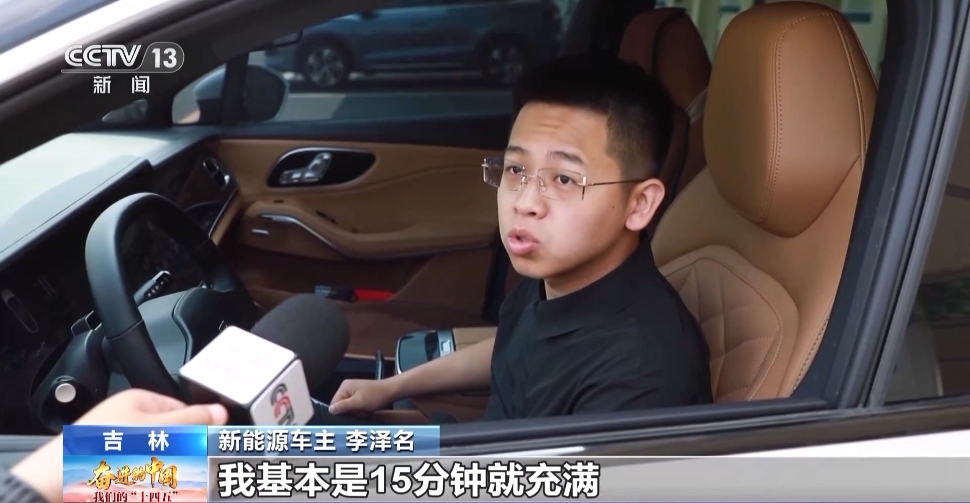 新能源车主 李泽名:这个充电桩是快充,我基本是15分钟就充满。现在充电桩在地图上一搜就有,特别特别多。周末我媳妇特别愿意上商场,上楼吃会饭,下楼电满了,方便。
