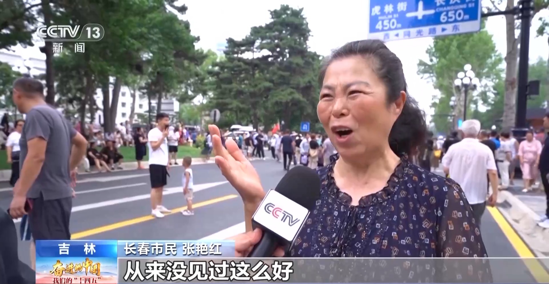 长春市民 张艳红:一踏入新民大街,心情太好了,围墙都拆了,露的都是绿地,还有好多的花丛。