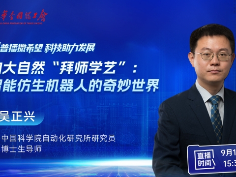 直播回顾|“科普播撒希望 科技助力发展”工会服务职工活动:向大自然“拜师学艺”——智能仿生机器人的奇妙世界 为深入贯彻落实党中央关于对口支援西藏工作的重大决策部署,在助力地区高质量发展和乡村振兴中充分发挥工会组织的桥梁纽带作用,中国教科文卫体工会、中国科学院工会在西藏自治区林芝市、日喀则市举办“科普播撒希望 科技助力发展”工会服务职工活动。6场精彩的科普讲座敬请关注!本场科普讲座专家——吴正兴,中国科学院自动化研究所研究员、博士生导师。生物经过亿万年自然进化,形成了与生存环境高度适配的形态结构、运动方式及行为机制,为人类发明创新提供了重要参考。近年来,智能机器人发展迅速,研究人员希望通过师法自然,仿生自然,继续推动该领域理论与技术革新。本报告聚焦智能仿生机器人系统:先从仿生学视角,结合生活中丰富的仿生实例,阐释仿生学对人类科技发展的启迪及研究价值;再详细介绍人形、足式、游动、扑翼机器人等典型系统;最后展望该领域未来发展趋势。9月12日(星期五)15:30—17:00中工网首页、微博、视频号同步播出。